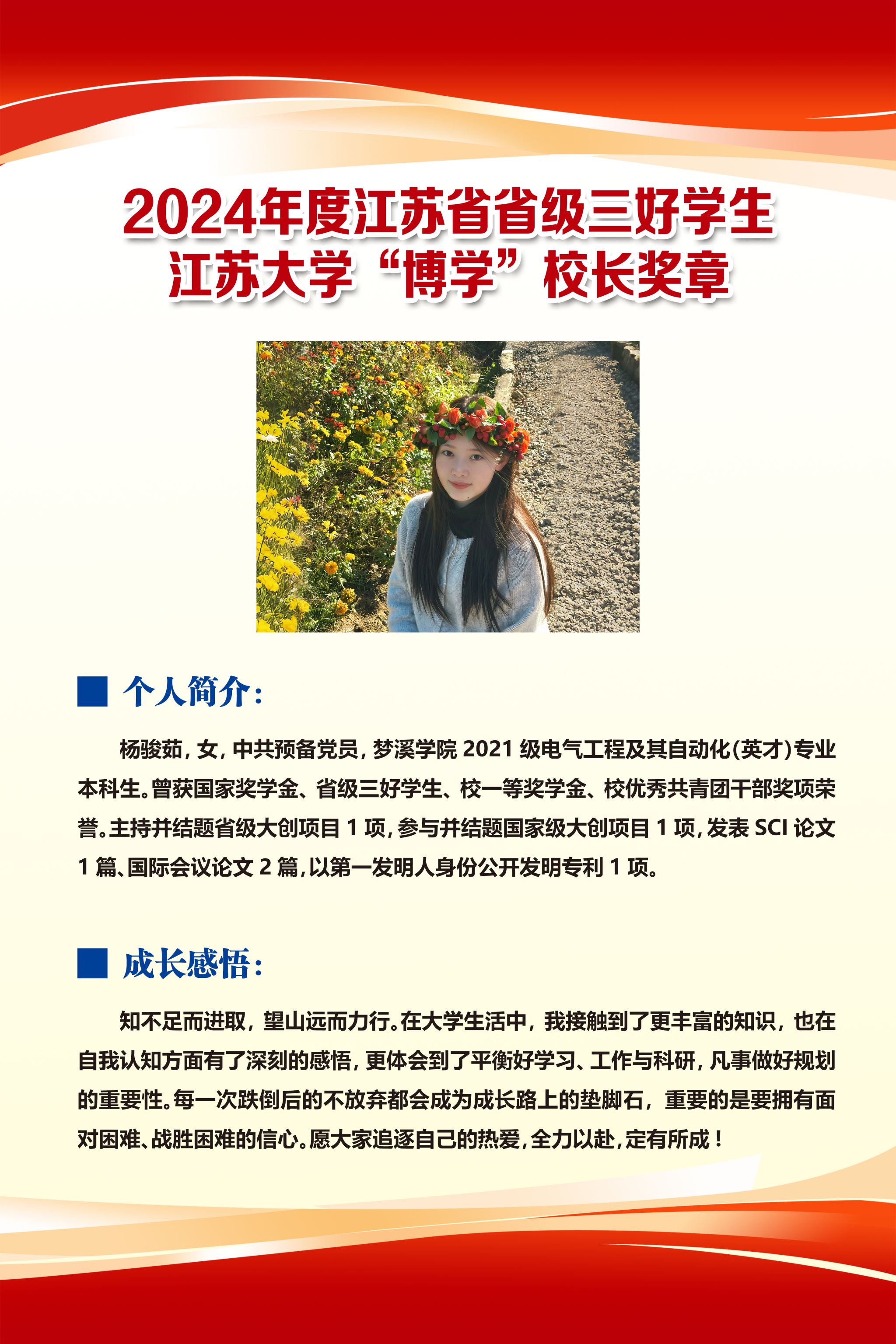 2024年度江苏省省级三好学生、兔子先生 “博学”校长奖章——杨骏茹